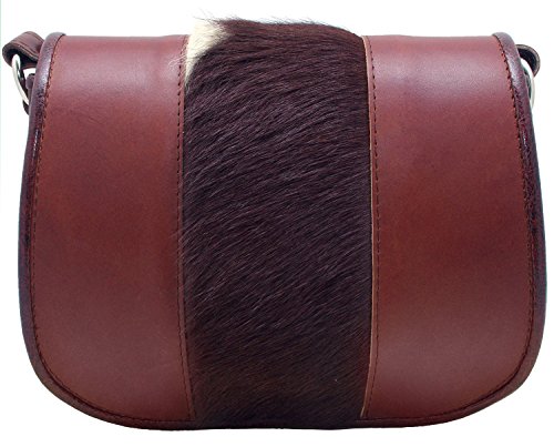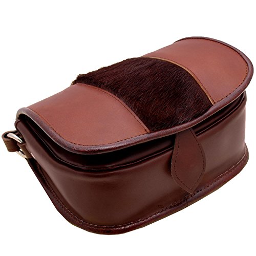 -. Title : Koson Leather Leder braun Pelz handgefertigte Schulranzen Schultertasche Kuriertasche