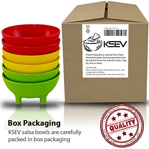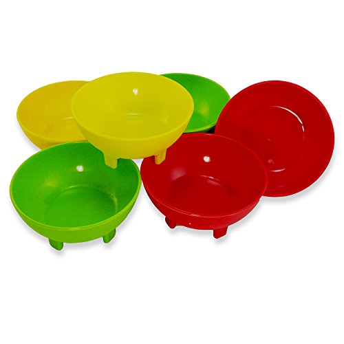 Product Description This is a bundle of 6 pcs Salsa Bowls. Perfect for parties, picnics or adding Mexican flair during dinner, this 6-piece Salsa Bowls Set made of durable plastic with four legs for balance. Each bowl measures approximately 5" wide with a depth of 1 3/4" and can hold up to 12 ounces. 0