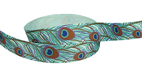 HipGirl Animal Cutie Bee Grosgrain Ribbon for Baby Showers, Hair Bows, Floral Designs, Gift Wrapping (5yd 7/8" Peacock Feather Prints)
