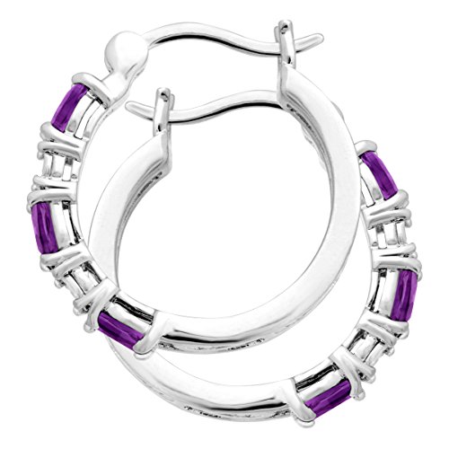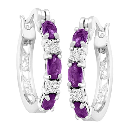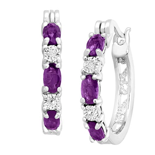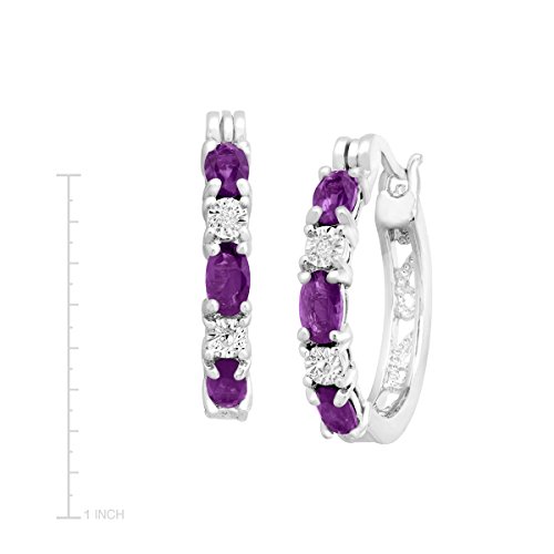 -. Feature : A never-fail style gets the special treatment with a smattering of radiant gemstones / Hoop earrings feature 6 oval-cut natural amethysts totaling 1 3/8 carats and 2 diamond accents / 7/8 inch diameter hoops set in platinum over brass / Click-top closure