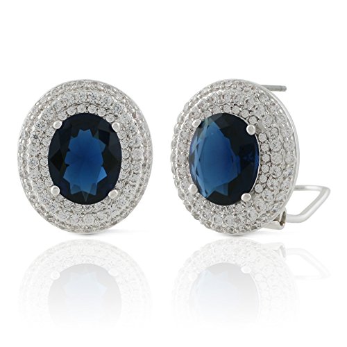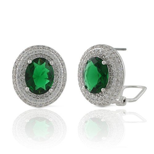 -. Feature : Length: 0.67 in, Width: 0.60 in / Rhodium Plated Post with French Clip / Oval Color and Clear Round Pave Cubic Zirconia / Birthday, Wedding, Anniversary, Valentine's Gift Idea / Total Weight: 7 grams
