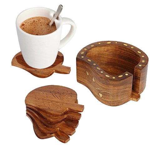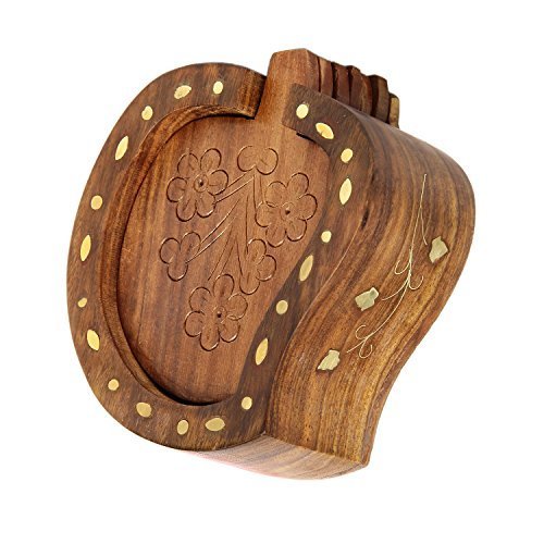 Icrafts Wooden Coasters Set of 6 Drink Coaster for Tea Cups Coffee Mugs Wine |Handmade| (Design2)