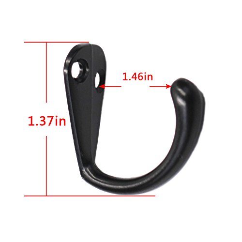 - Hook and screws size:coat hooks dimension is1.37" x 1.46"/(35mm x 37mm) , screws are 15 mm long and 5 mm in screw head diameter;elegant black hooks can be installed on most decoration