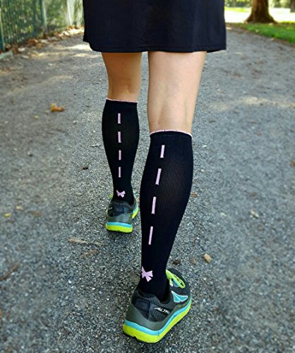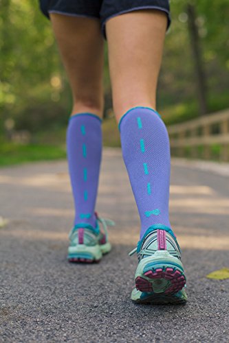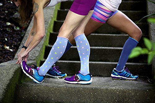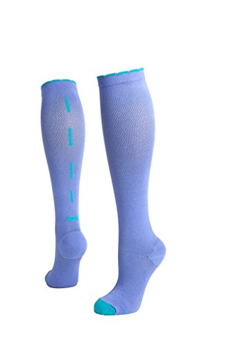 Lily Trotters Women's Designer Athletic Compression Socks - Sassy Bow Denim (S/M)