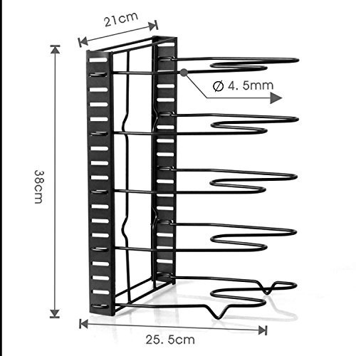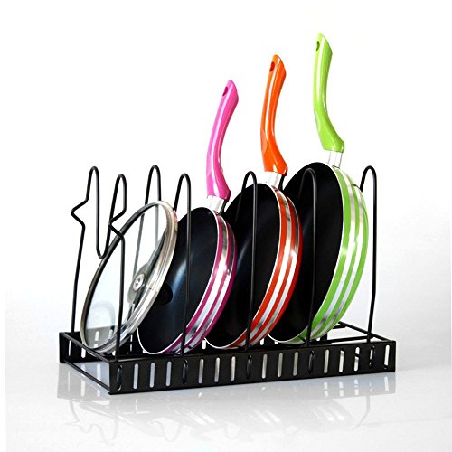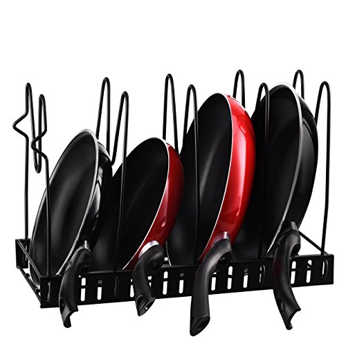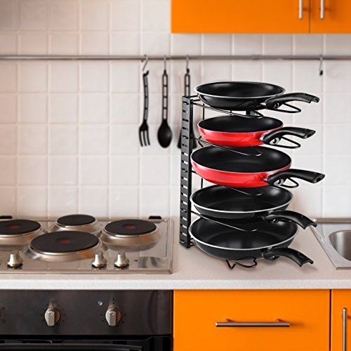 Adjustable Pan Organizer Rack Pot Organizer Cookware Holder Foldable - 5 Compartments - Shelf For Cutting Board Bakeware Lid Cookie Sheet Pantry