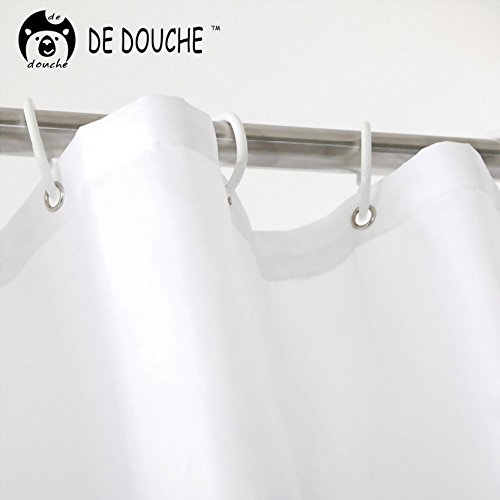POLYESTER!! COMES WITH PLASTIC HOOKS : Comes with Plastic ring hooks for the Shower Curtain. The grommets give the Shower curtain a sophisticated look and protect the curtain from ripping around the rings.