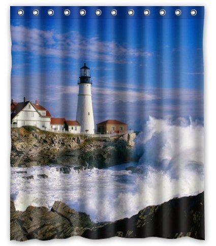BravoVision Fashion Custom Lighthouse and Wave Beautiful Scene Waterproof Fabric Bath Shower Curtain 70x72inch