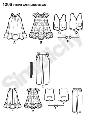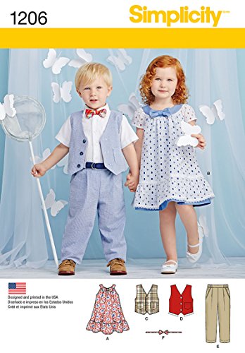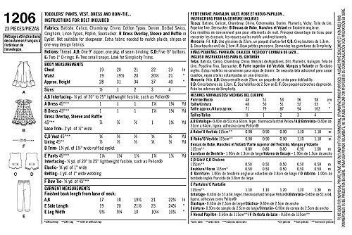 Simplicity Creative Patterns 1206 Toddlers' Pants, Vest, Dress, Bow-Tie and Belt, A (1/2-1-2-3-4)
