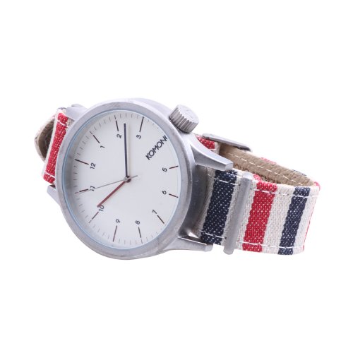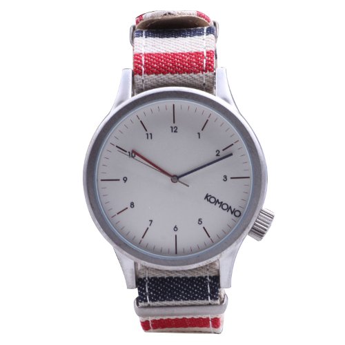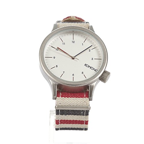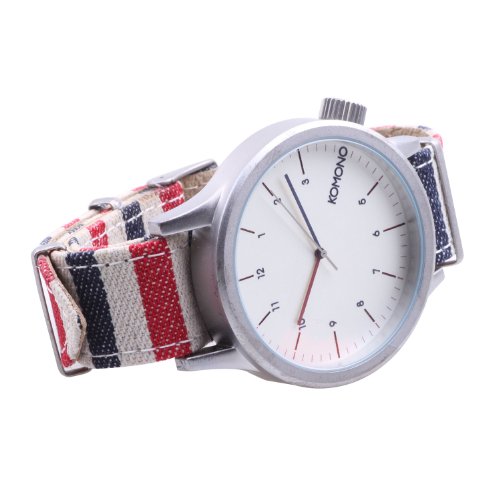 Studio : Komono Publisher : Komono Binding : Watch Product Description Komono combines style and function with a retro-futuristic slant on their line of slickly designed time pieces. Belgian designers Anton Janssens and Raf Maes deliver watches in a wide range of unique colors and patterns that will certainly add flavor to any wardrobe. The Magnus model features a 46mm face with metal case, Japanese Quartz movement, stainless steel back, and is water resistant to about 90 feet (3 atm). This is the Paravent version from the Komono's special Print Series and features a distinctive one piece fabric wristband with genuine leather lining. 0