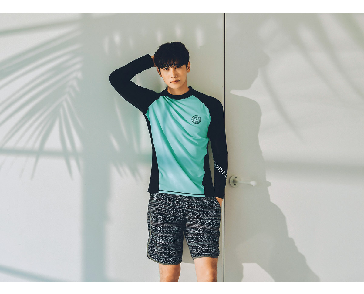 허리 밴딩과 옆 라인에 배색 원단이 포인트로 들어가 있어 멋스럽습니다.
