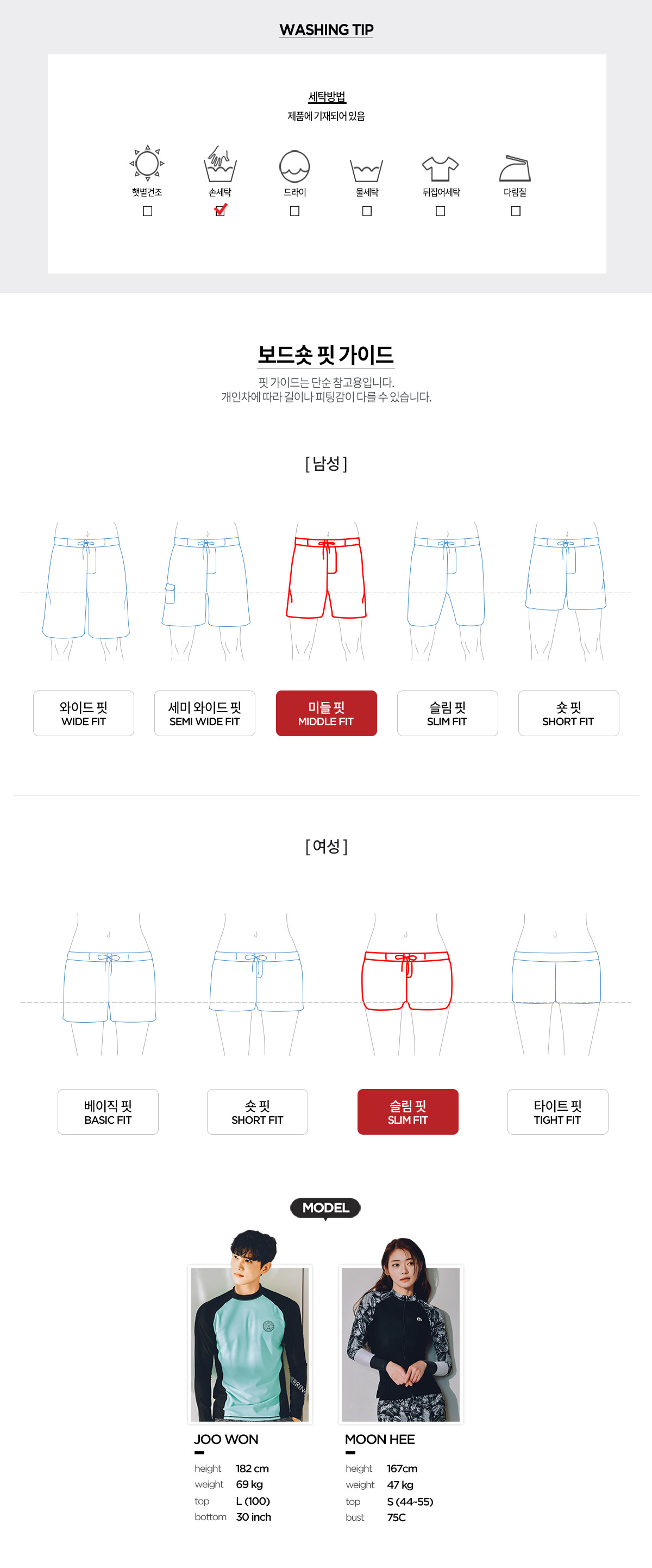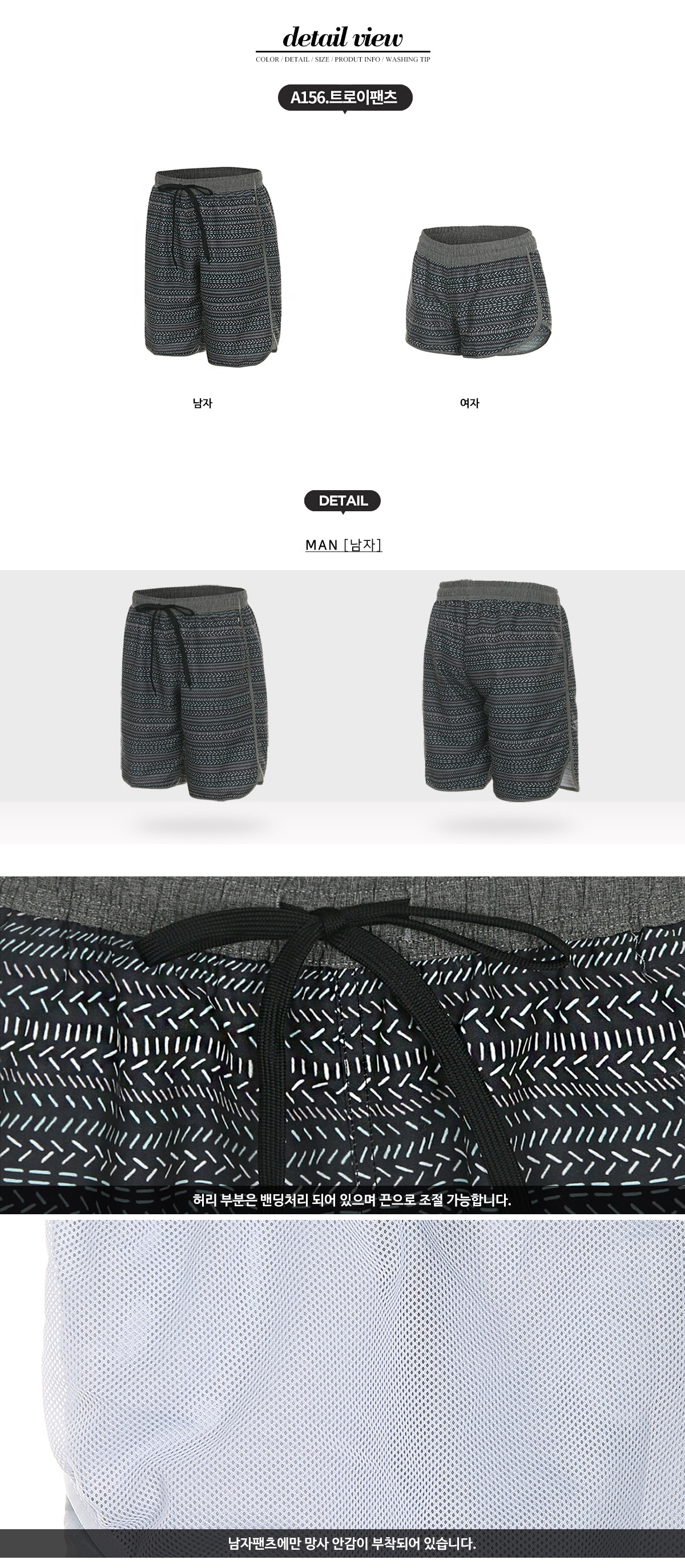 남자 팬츠는 옆주머니, 여자 팬츠는 뒷주머니가 있어 간단한 소지품을 넣을 수 있습니다.