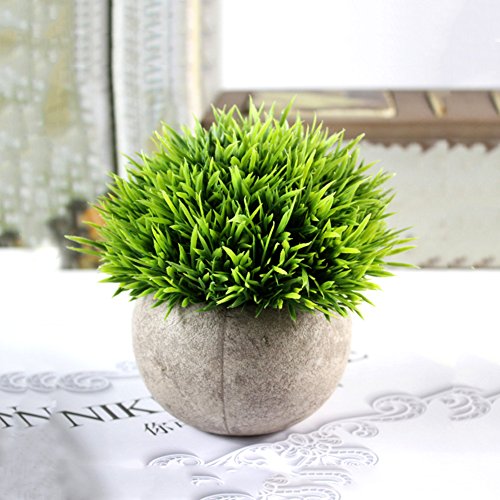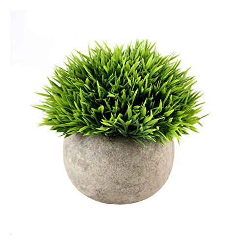 - Characteristics:The greenery looks really lifelike and the pot is well mage.Note:The pot is made of gray paper pulp ,pls do not put any water,can clean with wet cloth.Also the grass do not water,never fade.