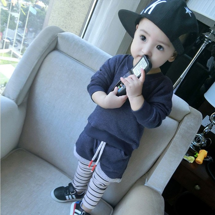 【製品仕様】■商品説明・とても可愛いセットアップ・上下コーディネートで簡単にお出かけできる~・別々に使える優れ物・女の子にも男の子にも◎ ■サイズ トップス 90cm: 肩幅:32cm 袖丈:30cm 総丈:37cm 100cm: 肩幅:33cm 袖丈:33cm 総丈:40cm 110cm: 肩幅:34cm 袖丈:34cm 総丈:42cm 120cm: 肩幅:35cm 袖丈:36cm 総丈:44cm ボトムス 90cm: ウェスト:19cm 総丈:52cm 100cm: ウェスト:19cm 総丈:58cm 110cm: ウェスト:20cm 総丈:63cm 120cm: ウェスト:21cm 総丈:68cm ■素材 コットン95% ポリウレタン5% 伸縮性有り■色#1グレー、#2ネイビー