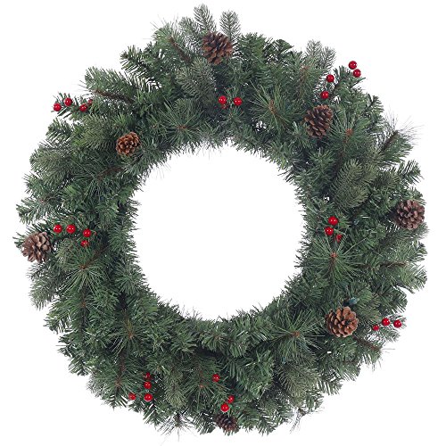 Vickerman Wesley Mixed Pine Wreath with Pine Cones, Red Berries & 122Tips, 24", Unlit