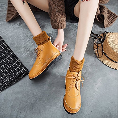 (WKIDWX)/Women's/Boots/DIRECT FROM USA/Women's Shoes PU Fall Winter Combat Boots Boots Round Toe For Casual Yellow Black White