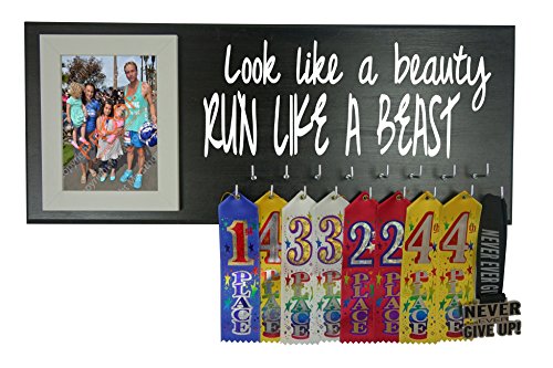Race bib and medal display - LOOK LIKE A BEAUTY RUN LIKE A BEAST - Run Disney inspired medal holder - Race medal hanger for women - 5K, 10K, half and full marathon gift