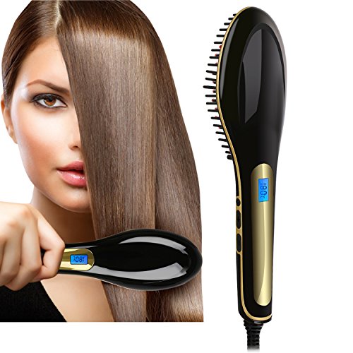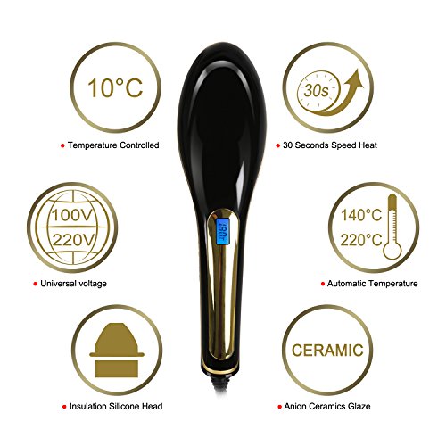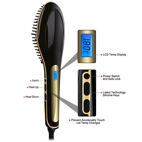 Title : NASV-100 Electric LCD Ceramic Massager Hair Straightener Anti Scald Comb Brush - Professional Fast Hair Straightening Instant Heating Detangling Paddle Styling Tool (Black)