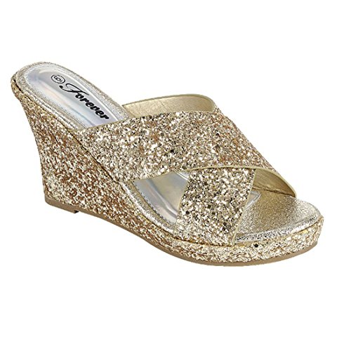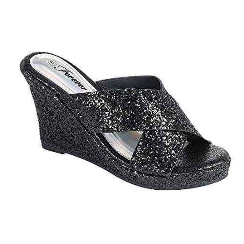(FOREVER)/Women's/Sandals/DIRECT FROM USA/FOREVER FQ53 Women's Glitter Strappy Slide Wrapped Wedge Heel Platform Sandals
