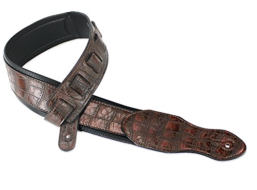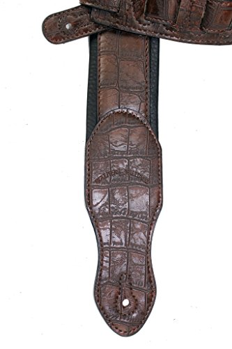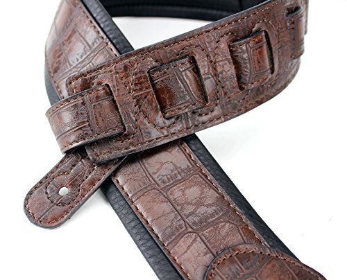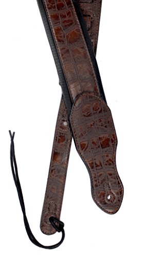 Walker & Williams F-06 Dark Brown Crocodile Pattern Padded Guitar Strap