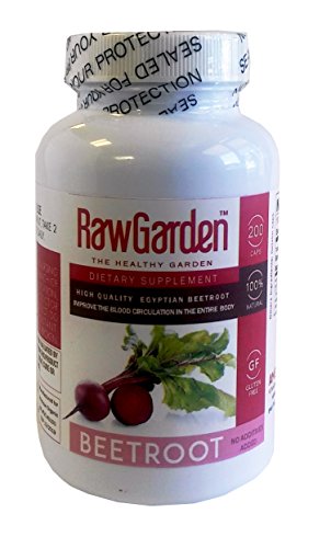 Raw Garden Beet Root Capsules (200 ct) "Beta vulgaris" with a High Nitrate Content. Non - Irradiated Non-sulfites- Vegan - Gluten Free. Product of Egypt