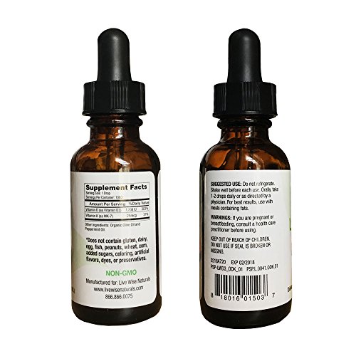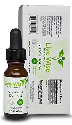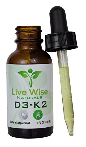-. Binding : Health and Beauty -. Brand : Live Wise Naturals -. EAN : 0818016014832 -. Feature : Without K2, D3 absorption is not optimal. K2 is essential for bone health. / Deficiency in Vitamin D is detrimental for our health. This active form regulates more genes than any other.* / Liquid drops are the fastest, most efficient pathway into our bodies in minutes bypassing the digestive tract. / Crucial for peak physical performance and muscle strength, greatly benefiting cardiovascular physical health.* / To maintain and improve cognitive function. Optimal D3/K2 levels are crucial to maintain health at all ages.* -. IsAdultProduct : 0 -. Label : Live Wise Naturals -. LegalDisclaimer : *These statements have not been evaluated by the FDA. This product is not intended to diagnose, treat, cure, or prevent any disease. -. Manufacturer : Live Wise Naturals -. PackageQuantity : 1 -. ProductGroup : Health and Beauty -. ProductTypeName : HEALTH_PERSONAL_CARE -. Publisher : Live Wise Naturals -. Size : 0.5 ounce -. Studio : Live Wise Naturals -. Title : Vitamin D3 with K2 Liquid Drops for Best Absorption, All Natural, NON GMO, 2417IU D3 and 40mcg K2 (MK7) Per Drop, Strengthen Bones, Boost Immune System and Energy Levels -. UPC : 818016014832