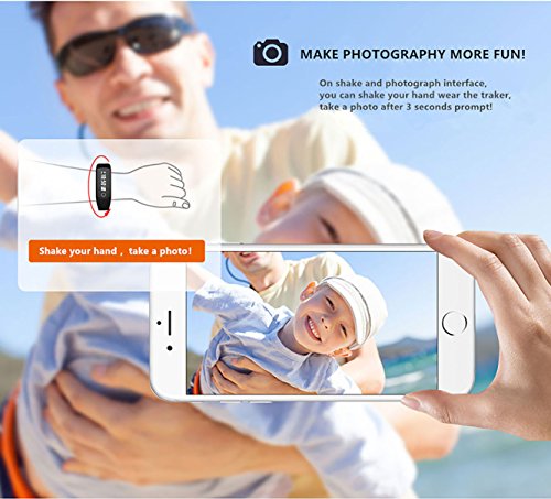 WATER-RESISTANT & CAMARA REMOTE: The silicon band tracks your active lifestyle through sweaty cardio sessions, showers, and frequent hand-washing with IP67 water resistance. On shake& photography interface, you can shake your hand wear the band and take a picture after 3 seconds prompt. It's fun for you, your families & friends!
