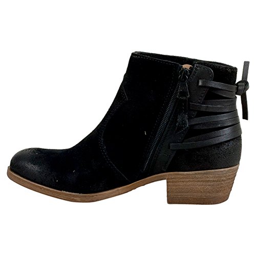 Product DescriptionAn ankle boot with western style accents, Miz Mooz Brady features a smooth suede upper with stitching embellishments, leather straps detailing in the back, Leather Sock Lining and a 1.75' heel.0