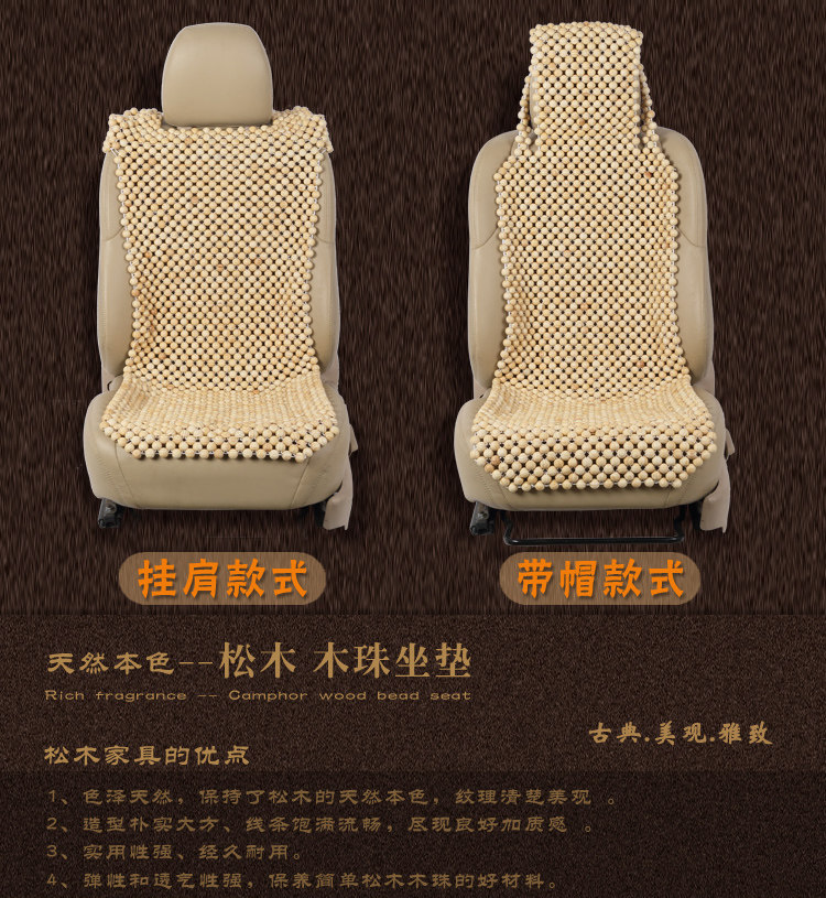 Pine Features: color uniform, beautiful, and every single wooden beads with a circle around the natural pattern. Pine rich phytoncid, can effectively eliminate the car smell and poisonous gas, keep the car clean air, as you create a green, healthy, elegant driving environment.