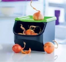 TUPPERWARE MODULAR MATES GREEEN COVER BLACK BASE ONION & GARLIC SMART CONTAINER 3 qt./3 L