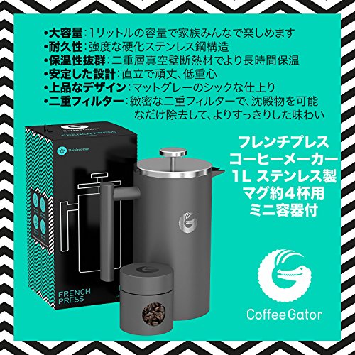 프렌치 프레스 커피 메이커1L 스테인레스제 머그 약4잔용 미니 용기부 Coffee Gator