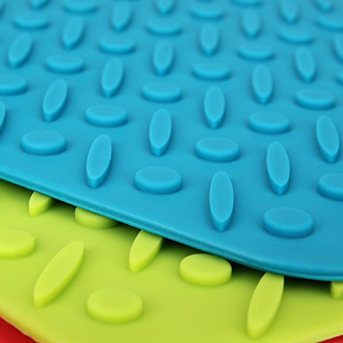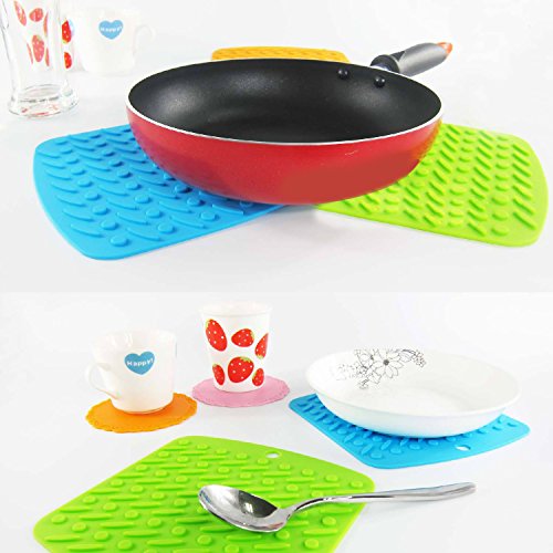 - Feature : size:17.2cm*17cm*0.6cm(6.77"X6.7"X0.2") / Novel design hot pads ,inclueded Four Colorful Silicone Hot Pads / Trivets / Flexible, non-stick, FDA-approved food-grade silicone, Heat-resistant material to -40℃-200℃ / Perfect display for home, wedding, party, and banquet,Easy to clean duable Home Dector. / Insulation performance, non-slip,suitable for kitchen table mats, bowls mat, dish mats, pot holders