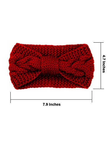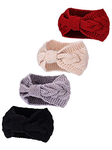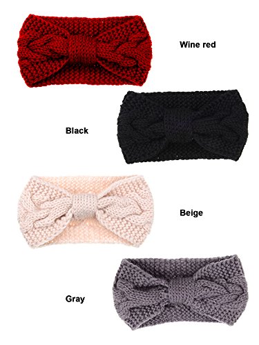 4 Pieces cable knit headband crochet headbands plain braided head wrap winter ear warmer for women girls, 4 colors Easy to match: 4 Colors of these headbands, can meet your different needs, enable you to choose the color according to your interests every day, they are easy to match with different kinds of clothes, very useful in the daily life. Design: Each headband is knitted, with cable knit style and bow knot design, which is classic and never get to old, has quality material, they are stretchable and soft to wear, can bring warm to you in the cold easily. Wide usage: The headbands can work as hair accessories for many occasions, such as costume parties, dating, Christmas parties, ceremony and so on, also can pull them down over ears to protect you from cold, especially for the winter. Specifications: Width (flat size): approx. 4.7 inches/ 12 cm length (flat size): approx. 7.9 inches/ 20 cm Colors: black, wine red, gray and beige Quantity: 4 pieces Package includes: 1 x Black knitted headband 1 x Wine red knitted headband 1 x Grey knitted headband 1 x Beige knitted headband Note: The color may have slight difference due to different monitors. 0