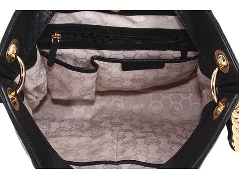 -. Binding : Apparel -. Brand : MICHAEL -. Department : womens -. Feature : Leather with golden studs / Golden hardware / Top handles / Shoulder strap with rings and chain detail / Snap closure / Hanging logo charm / Stud detail on front and sides / 12"H x 16"W x 3"D -. Label : MICHAEL -. Manufacturer : MICHAEL -. Model : 30T1MUAT7L -. ProductGroup : Apparel -. ProductTypeName : HANDBAG -. Publisher : MICHAEL -. Studio : MICHAEL -. Title : MICHAEL Uptown Astor Large Tote