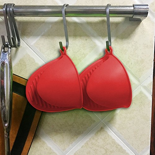 (2pcs), Heat Resistant Anti-scald Gloves for Cooking Pinch Grips, Pot Holder and potholder for kitchen, FDA-Approved Food-grade Silicone (Red)