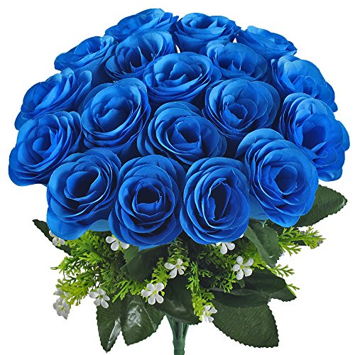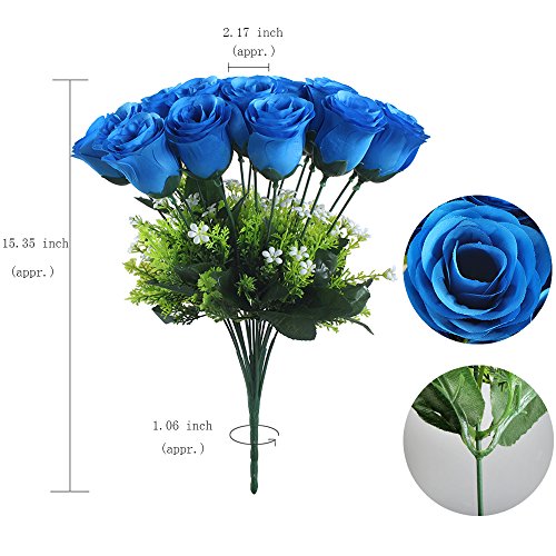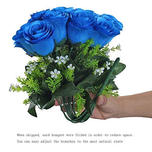 Gtidea Artificial Flower Bouquet 18 Heads Silk Roses Bridal Home Garden Office Dining Table Wedding Decor Blue