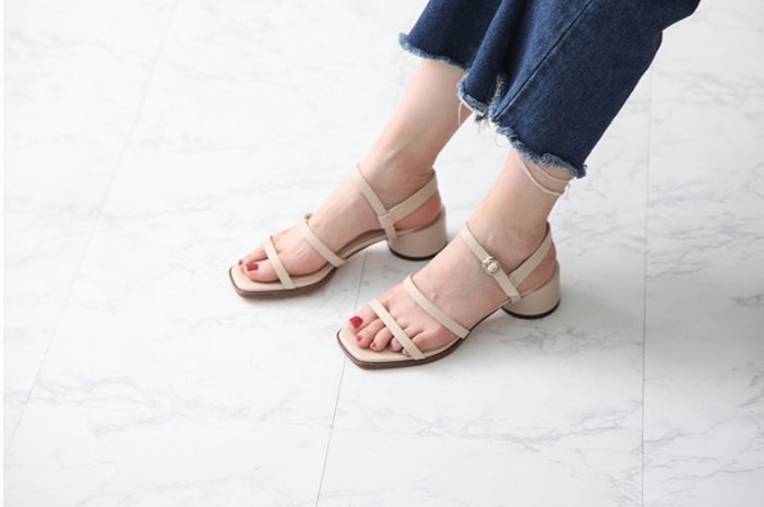 商品名:サンダル レディース 太ヒール チャンキーヒール アンクルストラップ 2018 夏 ファッション 靴 婦人靴
