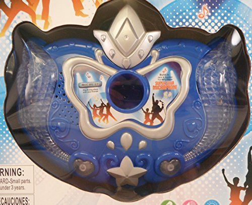 Super Star Microphone allows kids to sing alone or with friends! Adjustable height from 15.75" to 32.25". Built in jack and speaker for MP3 player, light and sound powered by 3 AA batteries, not included. For ages 3 and up.Feature