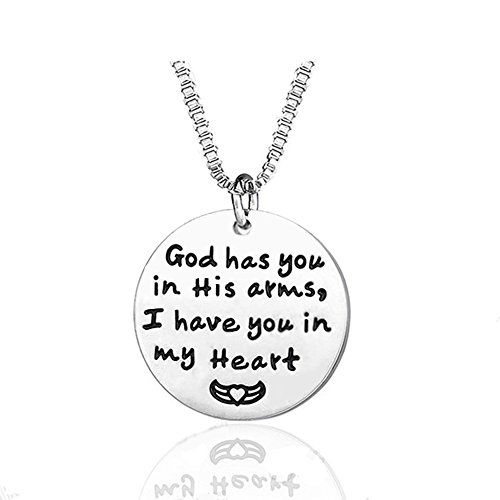 -. Feature : ✅ LOOK BEAUTIFUL AND FEEL CONFIDENT - Each pendant measures 1" inches (h) , set is made in a 316L Surgical Grade Stainless Steel backing coated in 18K White Gold. The 18" chain delivers a flawless fit for the girlfriend, mother, teen daughter or granddaughter in your life. Pendant engraved : « God Has you in His Arms, I have you in My Heart » / ✅ EMBRACE YOUR BEAUTY IN COMFORT - Our jewelry is specifically crafted to be safe on sensitive skin. Hypoallergenic & Nickle Free construction allows you to stand out in the crowd without the possibility of rash or skin irritation. / ✅ MAKES A GREAT GIFT: An inspirational necklace is the perfect gift to give young girls who love collecting charms, or even your loved one women or mothers who want to collect memorable small tokens and beads. / ✅ AFFORDABLE: You get a real value for your money when you buy this necklace. It is made of high quality materials and in a very professional way so it looks and feels luxurious and gorgeous / ✅ 100% SATISFACTION GUARANTEE - At Majesto Jewelry, we are confident that you will love our jewelry. In case you don't like your item you can return it within a 30-Day mark for a full refund. In addition, RISK FREE buy gives you a 90-Day, Replacement or Refund Guarantee in case there is anything wrong with the product.