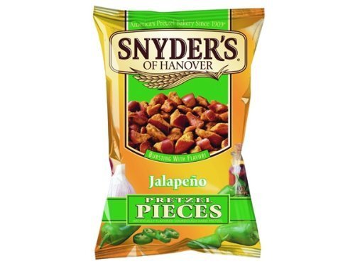 -. Feature : 2.25 Oz. - 15 Pack Snyder's of Hanover Jalapeno Pretzel Pieces / Generous chunks of sourdough hard pretzels coated with jalapeno seasoning bursting with intense flavor / Full flavor pretzel snacks are a healthier alternative to flavored potato chips / Zero Grams Trans Fats / Perfect nutritious snack for busy kids and adults alike
