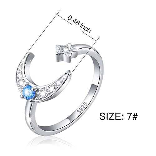 -. Feature : Theme: Moon and Star Ring for Girls / Ring Size: Adjustable Size; Total Weight: 2.36 g / Material: 925 Hypoallergenic Sterling Silver, Tarnish Resistant, Nickel Free / Package: 1 x Silver Cleaning Cloth and 1 x Velvet Bag / Birthday Gift, Graduation Gift, Christmas Gift, Halloween Gift,Thanksgiving Day Gift, Valentine's Day Gift, Mother's Day Gift, Wedding Anniversary Gift, Black Friday