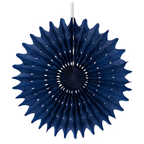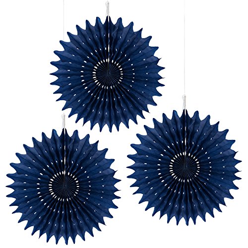 Floral Reef Set of 3 - 16" NAVY BLUE Paper Tissue Rosettes Fan Medallions Hanging Home Decoration Wedding Party (3 Pack)