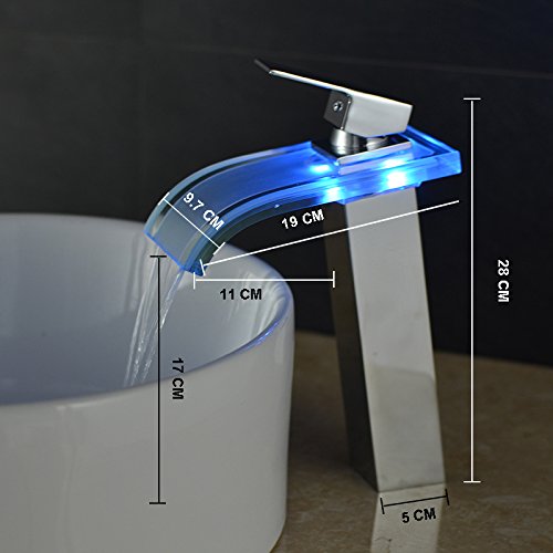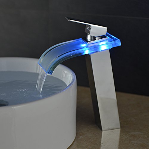 -. Binding : Kitchen -. Brand : Yannlii -. Color : Brushed Nickel -. EAN : 0604753489367 -. Feature : Ship from US,ship to US 3-5 business days. / Overall Height: 280 mm (11" ),Spout Height:170 mm ( 6.7 " ) / Spout Length:190 mm (7.5" ) / Laboratory tested for up to 600,000 life cycles at 90 degrees. / Includes water hoses with 3/8" female compression connector, U.S. standard size. -. IsAutographed : 0 -. Label : Yannlii -. Manufacturer : Yannlii -. PackageQuantity : 1 -. ProductGroup : Home -. ProductTypeName : HOME -. Publisher : Yannlii -. Studio : Yannlii -. Title : Yannlii LED Brushed Nickel Waterfall Bathroom Sink Faucet Water Flow Color Changing Led Faucet Lighting Vessel Faucet Centerset Widespread Modern Single Handle Single Hole Faucets -. UPC : 604753489367
