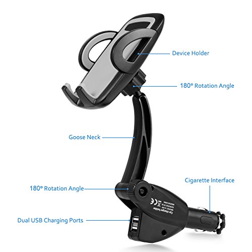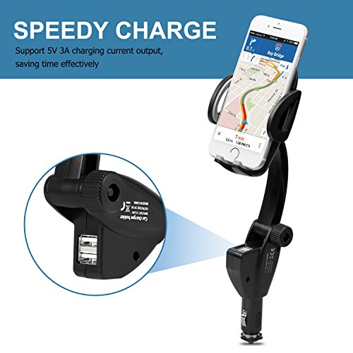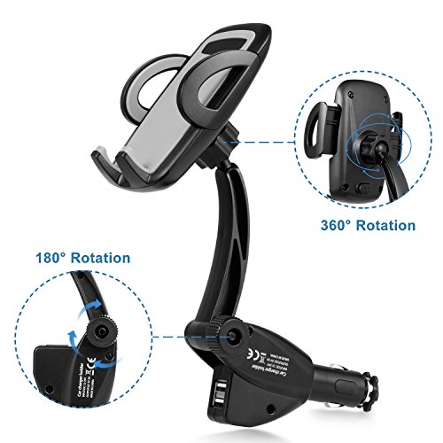 Phone Car Mount Holder, Ameauty 3 in 1 Cigarette Lighter Car Mount Charger with Dual USB Charging Ports for iPhone X/8/8 Plus/7/7Plus, 6s/6s Plus, Samsung Galaxy S8/S8 Plus and More