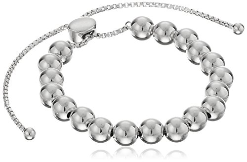 -. Title : Rhodium Plated Sterling Silver High Polish Beaded Bolo Adjustable Bracelet