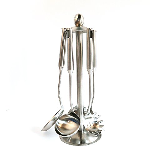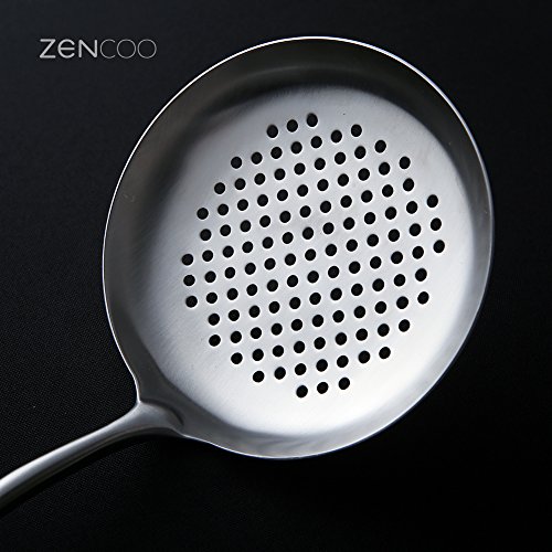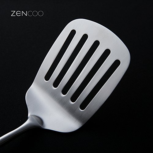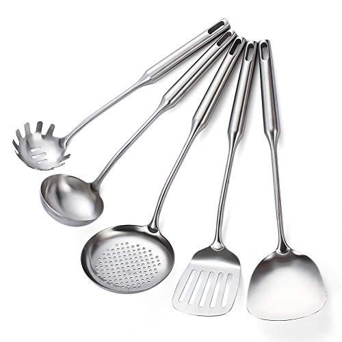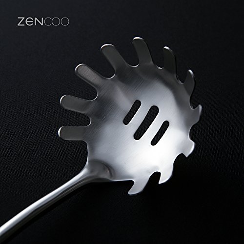 ZENCOO Cooking Utensils Set 5 pieces, All-In-One Piece 18/8 Stainless Steel Cookware Tools, Including Spaghetti Server, Soup Spoon, Strain Spatula, Slotted Spatula,Cooking Spatula