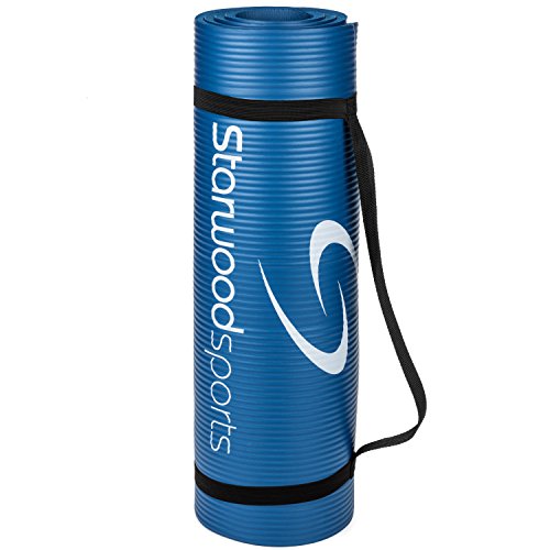 Exercise Mat with Carry Strap – 72 x 24 Inches (0.47” Thick) NBR Padded Foam Mat for Yoga, Pilates and Fitness