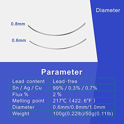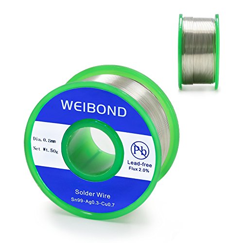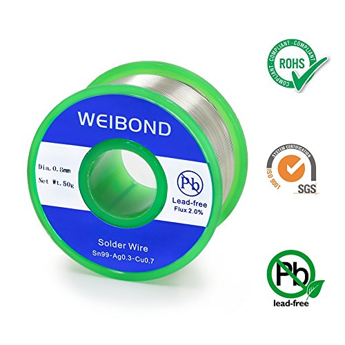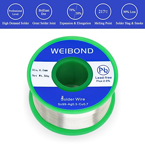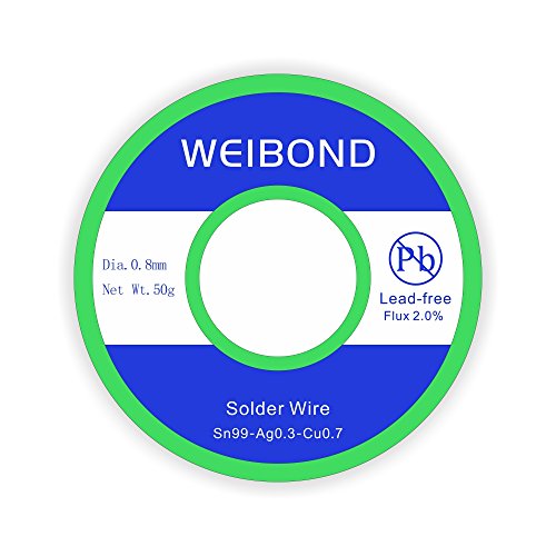 WeiBonD Lead Free Soldering Wire with Rosin Core, 0.8 mm, Net Weight 0.11 lb (Sn99%-Ag0.3%-Cu-0.7%, Flux 2.0%)