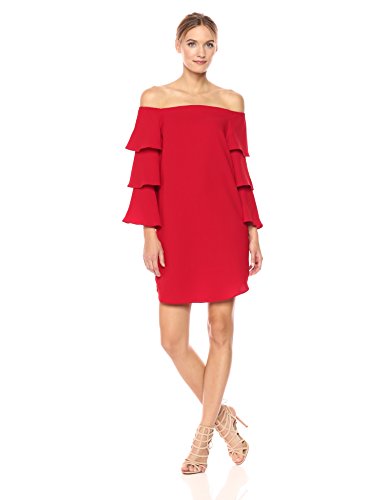 Nanette Nanette Lepore Women's Long Shoulder Shift Dress W/Tiered Bell Sleeve, Red Riding Hood, 6