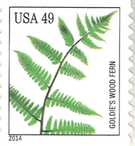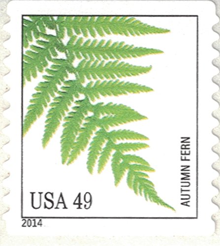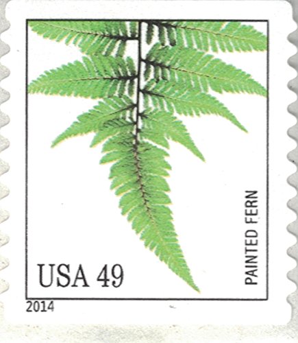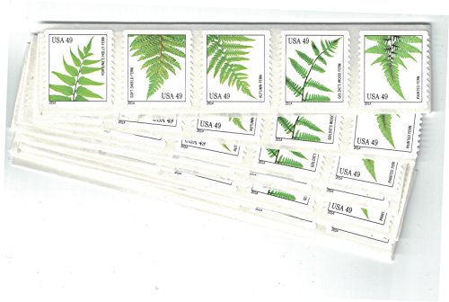 Strips of 10 Ferns USPS Forever Postage Stamps featuring a close up photograph of five different species of fern (10 Strips of 10 Stamps)