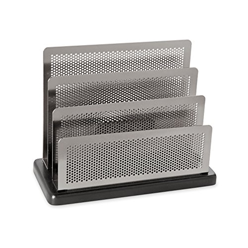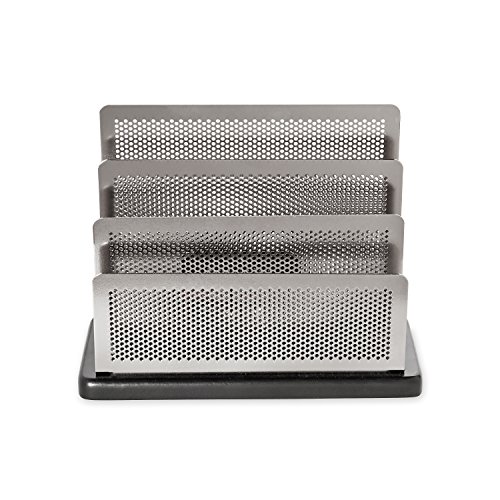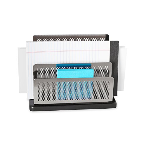 Rolodex Mini Sorter, Three Sections, Metal/Wood, 7.5 x 3.5 x 5.75 Inches, Black/Silver (E23572)